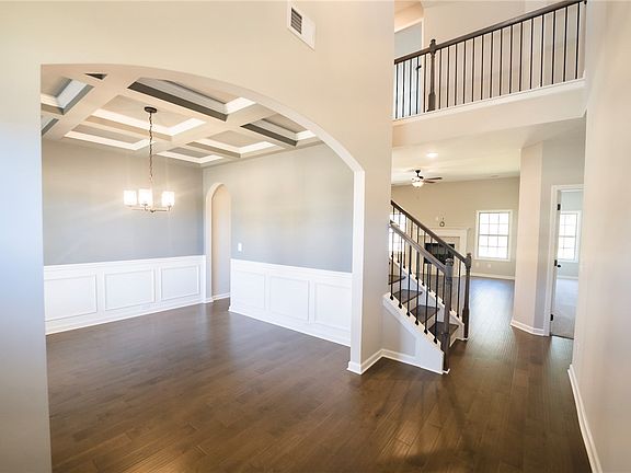This better than new 4 bedroom/3.5 bath offers the perfect blend of comfort, convenience, and contemporary features. Upon entering the home a large dining room is on your left. You enter into the open concept living room and kitchen with granite countertops and a gas fireplace. The master is on the main with a large bathroom with a garden tub and separate shower. Outside is a fully fenced in yard with a covered patio. It is game-day ready with a tv hookup and a fireplace.