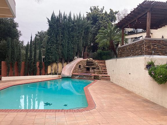 Resort like living. Surrounded by mature trees and lots of privacy. 600 sq ft master bedroom with jacuzzi, 2 walk in closets, balcony and lots of windows. Guest house with an entrance from Alcalde way. Pool, jacuzzi, water slide, fire pit, outdoor fireplace, outdoor kitchen and lots more.
