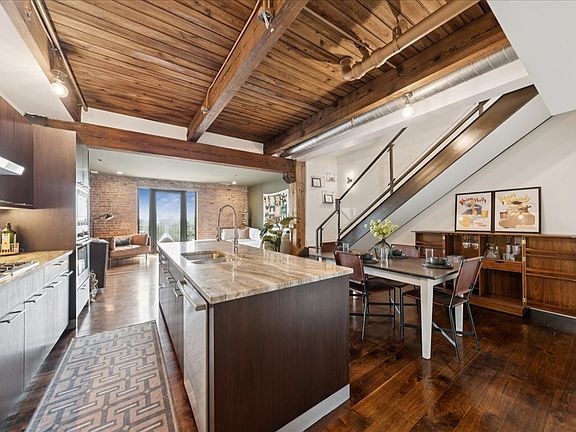 Experience penthouse living at its finest in this stunning duplex timber loft, where soaring 11-foot ceilings, rich hardwood floors, and exposed brick and beams create an unforgettable blend of warmth and industrial charm. Located in an intimate, boutique elevator building, this two-story home offers the best of loft living, plus TWO private outdoor spaces for relaxing, dining, and entertaining. The heart of this home is a chef-inspired kitchen featuring stainless steel appliances, including a wall-mounted oven and a spacious granite island that flows seamlessly into the open dining and living areas. Ideal whether you're hosting guests or enjoying a quiet night in. Upstairs, you'll find two fully enclosed bedrooms, including a luxurious primary suite with a walk-in closet and en-suite bathroom complete with a glass-enclosed shower, dual vanity, and custom, wall-spanning built-in storage. Step directly from your bedroom onto an expansive private terrace, the perfect retreat for morning coffee or evening cocktails. Additional highlights include in-unit laundry, a storage cage, and secured gated parking, all included in the price. A former factory, beautifully reimagined in 2016, features modern amenities such as a fitness center, high-definition security cameras, and an expansive common roof deck with panoramic skyline views. Tucked away on a quiet cul-de-sac in East Pilsen, next to Jefferson Playlot Park, this home offers a vibrant urban lifestyle just steps from the Pilsen Arts District, the future El Paseo Bike Trail, UIC/Halsted corridor, and the highly anticipated 78 development. This is a rare opportunity to own a true loft penthouse in one of Chicago's most dynamic neighborhoods. Don't miss it!