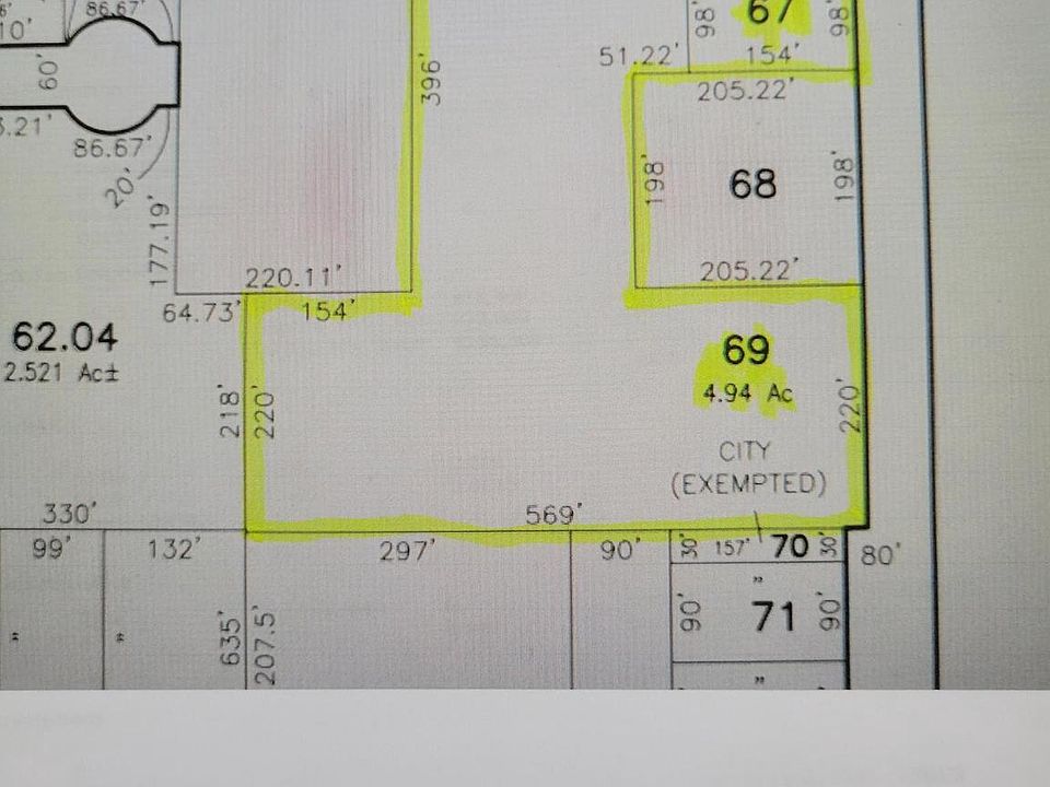 5.2 +/- acres of sub-dividable land. Two road frontages, one at 98' and another at 220'. There is gas, city water, and city sewer all available in the street.