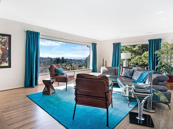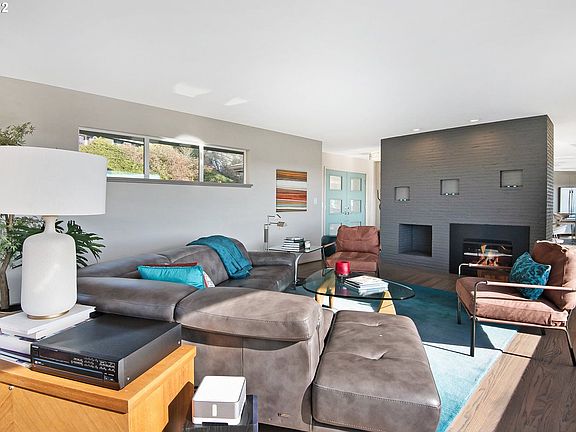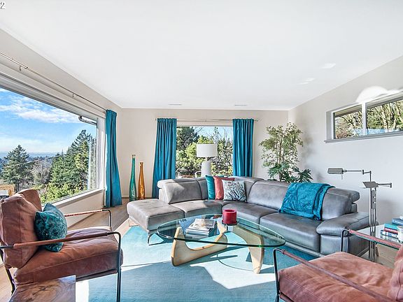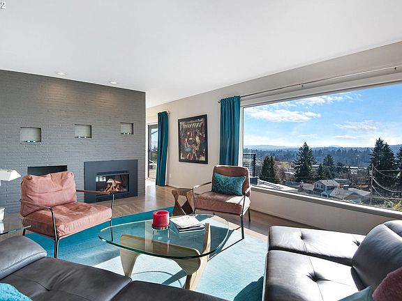 Stunning mid-century with commanding views in prime Hillsdale location! Extensively remodeled thru-out by designer-owner. Open floor plan, main floor primary suite + office. Lower level features family room, 2nd suite + 2 more bedrooms, large office or crafting space. Abundance of natural light,2 gas fireplaces. New windows,furnace,AC. Beautifully landscaped 1/4 acre lot with extensive decks, patios, 2 story playhouse . Fantastic location close to shopping, restaurants, parks, OHSU and downtown! [Home Energy Score = 1. HES Report at https://rpt.greenbuildingregistry.com/hes/OR10198533]