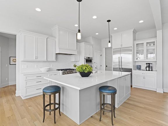 NEW HOME! This 5-bedroom home custom built and designed by Kings Way Homes and located in the sought-after Fox Lake Village in the City of Waukesha is ready for you to call it your new home. The main level features amazing water views and gorgeous sunsets from the great room, kitchen, dining room and the master bedroom! Additional entertaining space and views on the perfectly sized deck. 2 additional bedrooms and den complete the first floor. The finished lower level features a full walk out basement including full windows and a patio door. 2 additional bedrooms and rec room feature beautiful views of the water and sunsets. A wet bar and full bathroom complete the finished lower level.
