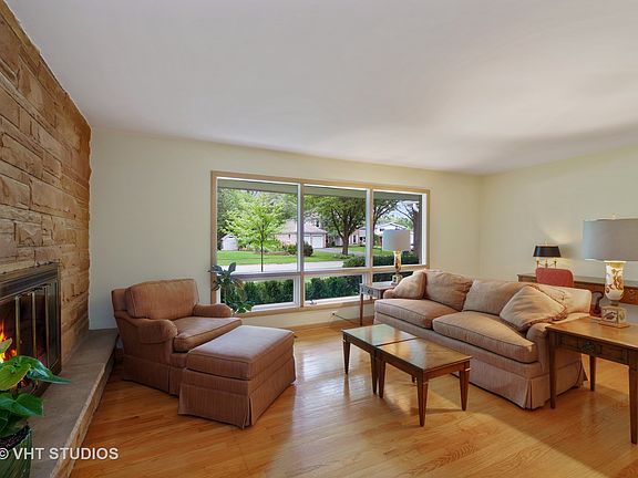 Desirable Tall Trees Ranch on corner lot. Original owner/ builder built this solid all brick home for his family and has enjoyed many happy years here. Chalet Nursery designed and maintains the grounds with colorful perennials for all seasons and mature trees including a huge pin oak. Enjoy the lannon stone see through wood burning fireplace from the living room or the family room. Kitchen with pantry, breakfast nook and butler pantry. Large separate dining room opens to enclosed sun porch with amazing yard views. Full finished dry basement brings interior square footage to over 5,000 sq.ft. Interior & exterior recently painted. Roof & Mechanicals newer. Front porch and walkway all new. Tall Trees lives up to its name with beautiful trees, a park with playground, basketball court and play field. Winding streets with sidewalks with only one entrance - close to the Glen, Metra, award winning schools and so much more.
