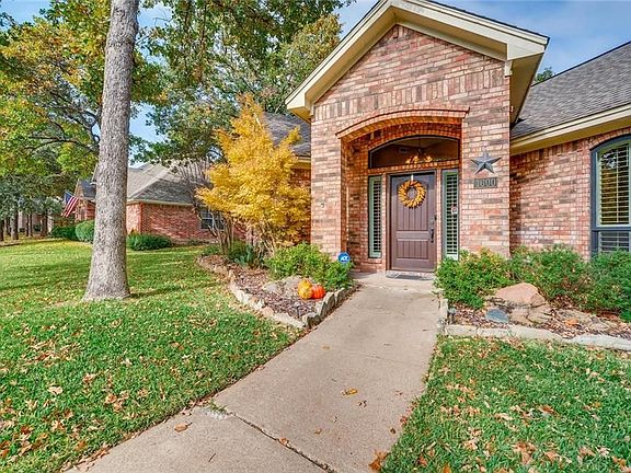 This one will go fast. Priced to sell. Beautiful traditional ranch style home on a corner lot in a quiet neighborhood. Fireplace in living, french doors to sun room. HOA provides boat launch to Eagle Mountain Lake and picnic area. 4 BR (one used as office), 3 full baths. Spacious Master with double vanity and garden tub. 2 car garage. Alley behind home. Fireplace with 2 living areas and formal dining with chandelier and separate breakfast area. Stunning back yard oasis with serene pool and waterfall feature. Entertain in your Outdoor Gazebo covered seated area with fan. Warm up at the firepit pool side. Palm trees in backyard add peaceful and tropical feel.