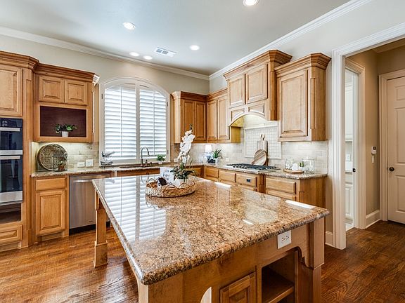 ONE OF A KIND layout offering AMAZING high end finish out within prestigious La Cima Manor-on a quiet cul de sac greenbelt street! Custom built by Huntington Homes, this layout is very unique, offering the perfect amount of space for those looking to downsize in space, but not downsize in the finish out. Gorgeous Handscraped hardwoods flow throughout most of the first level. Plantation shutters, crown molding at every turn, built ins in the Family Room. HUGE island Kitchen with stunning light stained maple cabinetry with various shelves for decor and storage. Butlers pantry, travertine backsplash, walk in pantry. Study could also work as a guest suite with closet and full size bath nearby. Primary bedroom is overized with more of the handscraped hardwood flooring, crown molding and plantation shutters. Separate double vanities, oversized shower and walk in closet with out of season storage and harndscraped floors. Upstairs is Gameroom with hardwoods, Media room and 3 more guest rooms up! Large oversized pergola covers the backporch and has large trees, ideal privacy! This is so close to the new Whole Foods Grocery, exemplary Wilmeth Elementary! Stonebridge Ranch is a true lifestyle with catch and release ponds, extensive hike and bike paths, pools, pickel ball and tennis courts! WOW!