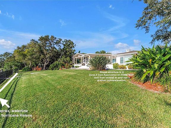 One or more photo(s) has been virtually staged. Tired of being right on top of your neighbors house? Searching for a home on elevated land but with NO STEPS to get inside the front door or anywhere else inside the house? Sounds impossible to find… Until TODAY! EMBRACE COASTAL WATERFRONT LIVING TO ITS FULLEST with this well maintained, move-in-ready, open water view paradise with the most incredible sunsets. This property is surrounded by mature landscaping on an oversized,.39 acre lot with 100ft of water frontage. Properties along Sunset Dr. on the bluff DO NOT go up for sale often. THIS HOME HAS NEVER FLOODED. It sustained NO DAMAGE from the 2024 storms. In fact, the majority of the property and house are in a non-flood zone. This home is all block construction and mostly on a crawl space. The large lot size allows room for growth if desired. The living space features a tiled fireplace, water views from every angle and new LVP floors. The kitchen is light and bright with a breakfast nook, granite counters, stainless appliances, soft close cabinets with several pull-out drawers to make the best use of space. It is conveniently accessible to the enormous covered lanai and to a utility/inside laundry room with a sink, floor to ceiling cabinets and pantry that provides an abundance of storage. There is also a natural gas line located directly behind the current electric oven if you prefer to switch to gas. The primary suite addition was completed in 1993. The dimensions for the bedroom are 16x23 not including the large walk-in closet or bath. This dreamy primary suite has stunning water views, a vaulted ceiling, access to the lanai and a large walk-in shower. The primary suite is accessed through the office, which includes built in shelving/desk, a closet and full bath. The possibilities for this space are endless and could make a fantastic mother-in-law suite! The second and third bedrooms are both good size and on opposite side of the house. The updated, main guest bath has access to the exterior pool deck. The backyard oasis features a large, covered lanai with beautiful beams and a cathedral ceiling. The Pebble Tec surface, salt water pool has a built in spa that is heated with natural gas. Imagine the breeze off the open view of Clearwater Harbor. The long dock with rope railing and Trex decking feels like it came out of a story book. At the end, enjoy the large built in Trex bench for seating while watching the sunset. It’s an ideal spot for winding down at the end of the day to watch the sailboats, dolphins, manatees, seabirds and even fireworks during holidays. The dock was built in 2017 and includes a 9000 LB Hi Tide lift that provides easy access to the intercoastal waterway, Caladesi and Honeymoon Islands and the Gulf. OTHER: Transferable flood policy ONLY $1315 a year! Roof(2012), 2 Trane AC systems-regularly maintained since owned (2014), garage doors, some windows and 2 sliders updated to impact resistant (2023), exterior paint and light fixtures (2025). This prime location has NO HOA and has easy access to the Pinellas trail, Coachman Park/Baycare Sound and more. It is set between the quaint town of Dunedin, Downtown Clearwater/ Clearwater Beach making this home just minutes from an array of restaurants, nightlife, shopping and beaches. Call today to schedule a viewing and make everyday feel like a DREAM COME TRUE... AT HOME.