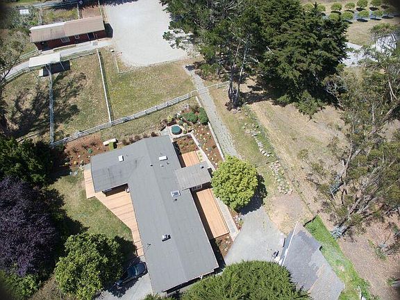 Close-in Country Estate Living! Perfect in size, privacy, and location. This 2.23-acre property is comprised of two 1+ acres parcels; fenced and cross-fenced. On one parcel sits a inviting 3 bedroom, 2 bath, light, open single-level home, with breakfast room, dining room, family room and lots of windows and decks to enjoy indoor-outdoor living. This parcel It has a detached storage garage, storage shed and loft,and natural landscaping. On the other parcel sits a barn, with 2 stalls, 4 horse paddocks and equipment storage. Plus, a horse dressage arena, all within 30 minutes of SF, the Peninsula and SFO