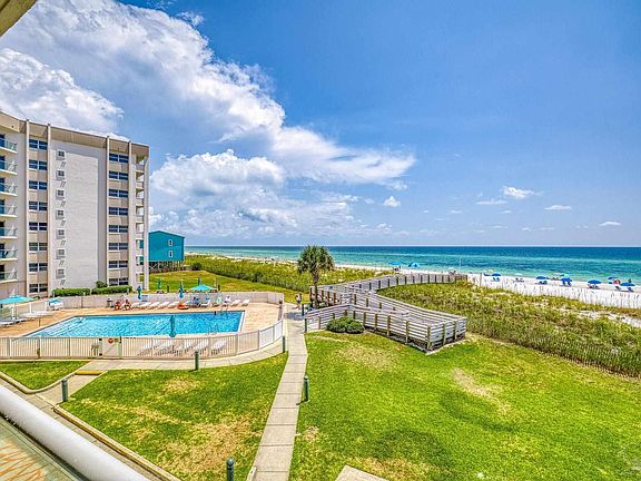 Regency Towers is one of the most desirable communities on Pensacola Beach, known for its excellent HOA, strong management, and loyal guests who return year after year. Ideally located just east of the main beach hub, it offers privacy and relaxation while still being close to restaurants, shops, and entertainment. This beautifully remodeled 1-bedroom, 1.5-bath condo features a seamless flow from the open living area to a large balcony with breathtaking Gulf views. The updated kitchen includes stainless steel appliances, granite countertops, and freshly painted cabinets, while both bathrooms have been stylishly upgraded. No carpet throughout keeps the interior fresh and coastal. The spacious primary suite is a private retreat with its own balcony access—set just high enough for privacy while capturing sweeping views of the beach and pool. Comfortably sleeping 4–6, this condo is ideal as a primary residence, second home, or a turn-key vacation property that can help pay for itself. Resort-style amenities include a gulf-front pool, tennis courts, fitness center, and direct access to the white sands and emerald waters of Pensacola Beach. A rare opportunity to own at Regency Towers—luxury living with proven rental appeal.