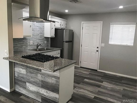 Great Home! Has been redone inside and out! Upgraded flooring and new carpet. All fresh paint inside and out. Huge lot with two large carports and tons of area to park cars and trucks and RVs and Boats. Fully fenced with large backyard and covered patio. New bathroom with fancy tile bath/shower with glass tile accents. Cute open kitchen with granite counters and full glass backsplash. New stainless steel appliances with refrigerator and refinished cabinets. Cool floating stainless steel vent over stove. Large family/living room and ceiling fans in bedrooms. Master bedroom has a huge walk-in closet. New Water heater. What else could you ask for? One of a kind in Bullhead City. Roomy and affordable! Buy it now!