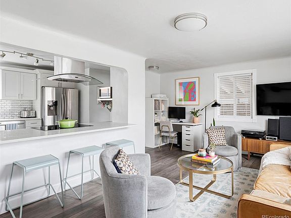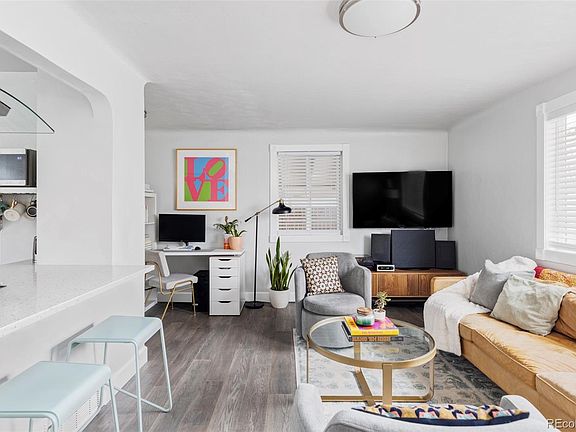Fresh updates meander throughout this corner lot Sunnyside gem. Inside, an open-concept layout is wrapped in new paint to emphasize the cascades of natural light. Grounded by laminate wood flooring, the living space is illuminated by a picture window. A breakfast bar in the living area opens up to a bright and updated kitchen with stainless steel appliances. Stone counters, abundant cabinetry and a tile backsplash offer a modernized palette while making the most out of the space. Each of the two bedrooms are cozy hideaways drenched in natural light — one of which features a cozy nook perfect for reading or a desk. The bathroom is just as luminous with sleek tile and a built-in shelf for toiletries. Retreat to a backyard oasis with a spacious paver patio and private fencing. This home is complete with a 100 sq ft finished shed with electricity, making it a great space for a home office or workout studio. Additional updates to this home include a new roof, HVAC system and electric panel (2018). Situated just moments from LoHi restaurants (Wildflower, Acova, Root Down & Avanti) and Sunnyside staples (Radiator, Waldschanke, Monkey Barrel, Bacon Social House & so many others), this residence offers an abundance of amenities in a treasured neighborhood. The main house is 807 finished sq. ft. with an unfinished crawlspace the entire footprint of the home. The crawlspace measures 4' high and includes the furnace.