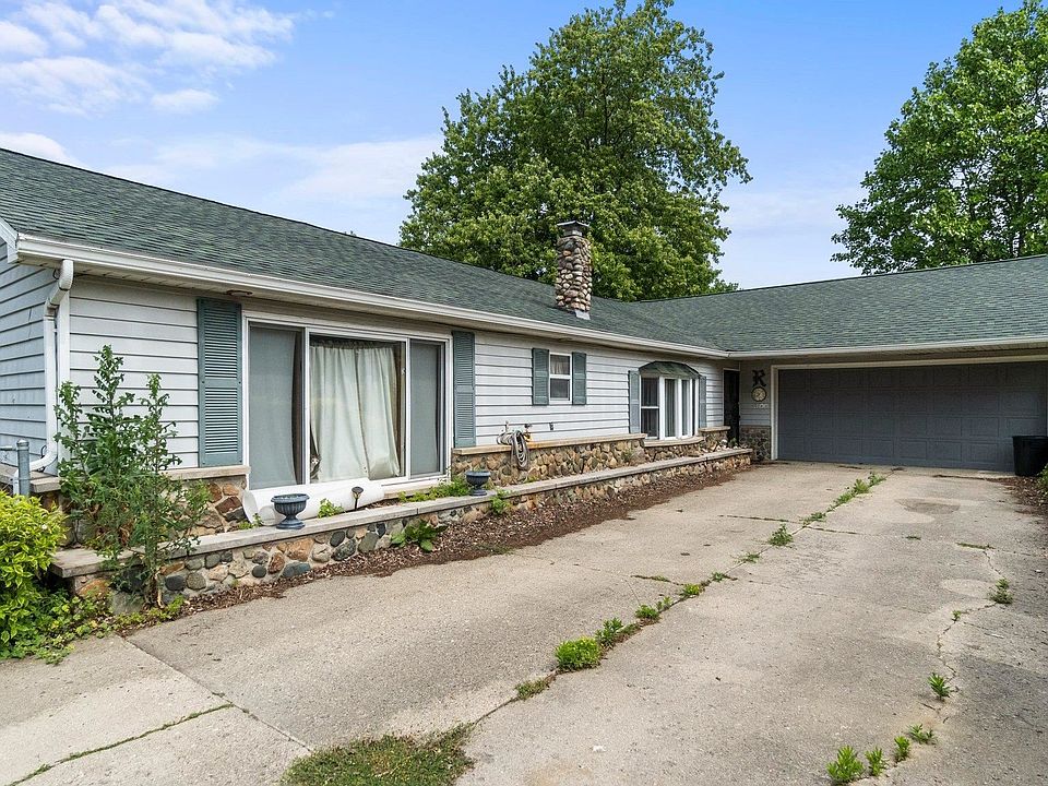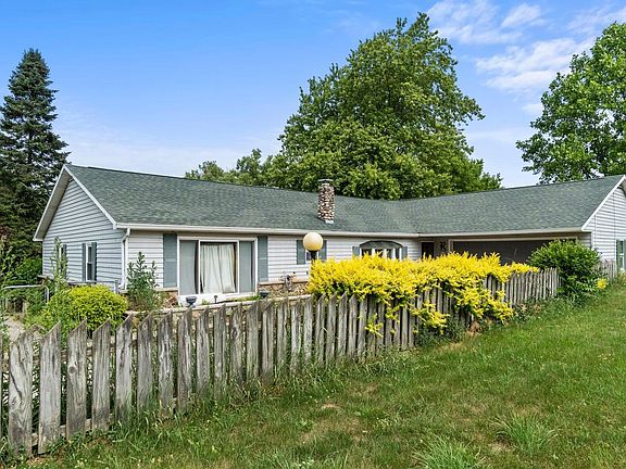 Welcome to this enchanting retreat nestled on 1.5 acres of picturesque land. This charming home, spanning 2100 square feet, offers a cozy haven with three delightful bedrooms and two bathrooms, ensuring ample space for relaxation and rejuvenation. As you step into the inviting living room, your eyes will be drawn to the captivating and quaint stone fireplace. The two-car attached garage provides convenient parking, while the three-car detached garage offers endless possibilities for hobbyists or extra storage. Surrounded by nature's beauty, this property beckons you to explore its sprawling grounds, perfect for gardening, outdoor activities, or simply basking in the serenity of the landscape. Although being sold "as-is," the potential and charm of this idyllic haven are undeniable, offering you the opportunity to shape it into the home of your dreams. Don't miss the chance to experience the allure of this enchanting abode.