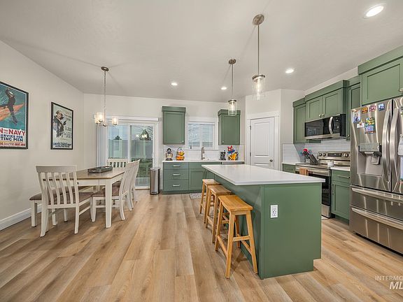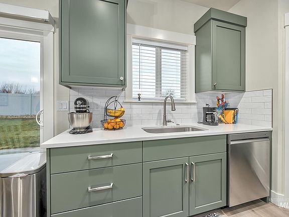 Modern touches meet cozy atmosphere in this better than new, 1-year old home. Located in a new development on the outskirts of town, this home offers a quiet suburb feel. Immaculately maintained with custom finishes and vaulted ceilings. The kitchen features an oversized island with quartz countertops, tile backsplash, and corner pantry. The master features a lovely attached bath with walk-in closet and office nook. The split bedroom plan features 2 additional bedrooms and guest bath on the opposite side of the home. Step inside to the updated garage with newly built cabinets. Fully fenced yard and additional concrete parking in front of and behind the fence for your trailers or toys. This is the perfect, move-in ready home!