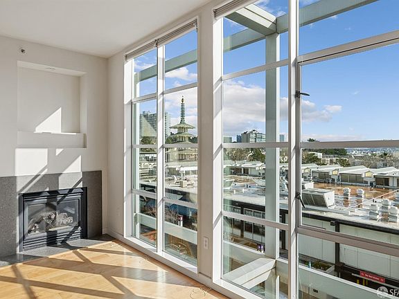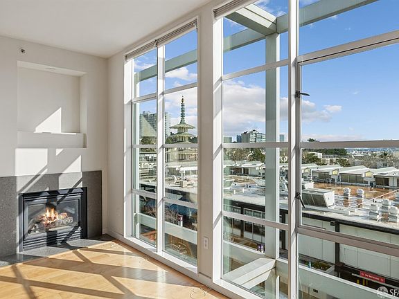 Bright and contemporary Lower Pacific Heights Top Floor condo located just steps from popular Japantown! Rarely available unit - hardwood floors, dramatic floor-to-ceiling windows, open concept living/dining floor plan with natural sunlight & gas fireplace. A modern kitchen features stainless steel appliances, granite countertops and a breakfast bar. Spacious bedroom with large closet, bathroom with shower/tub and separate laundry room w/in unit Bosch W/D. 1-car parking + large deeded private storage unit. Building amenities include rooftop with views, bike storage, elevator, secured intercom entry and lobby. Incredibly central location, nestled only mins from excellent restaurants, shopping and walk-to-popular Fillmore St & Lafayette Park, Muni, and all public transportation. This location is also minutes to all major commute routes. Walk Score of 99!
