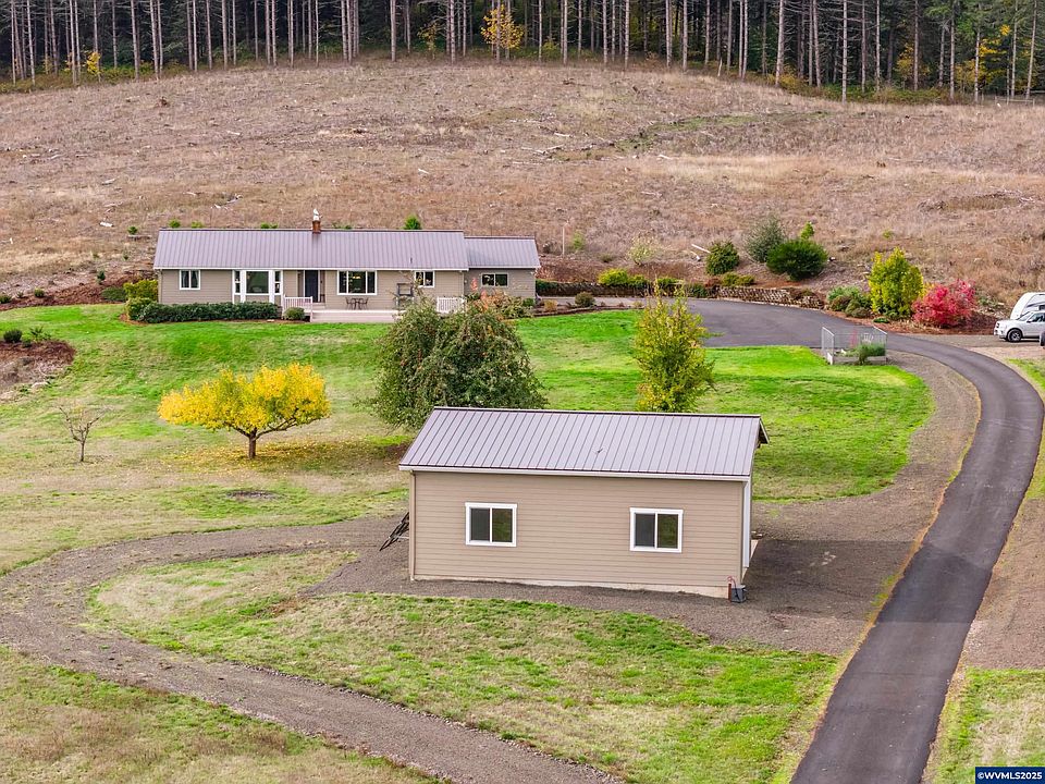 Peaceful dream property on 15.54 acres of natural beauty! This original-owner, custom-built 1 level home showcases stunning valley & mountain views, open concept living & quality craftsmanship throughout. Featuring 4 bedrooms plus an office, solid wood kitchen cabinets, granite counters & a cozy woodstove. Enjoy premium outdoor living with a covered patio with swim spa, UGS, fruit trees, 2-car garage, plus a metal roof & on Lukiamute water! Shop with solar, RV pad. Your very own piece of Oregon paradise!