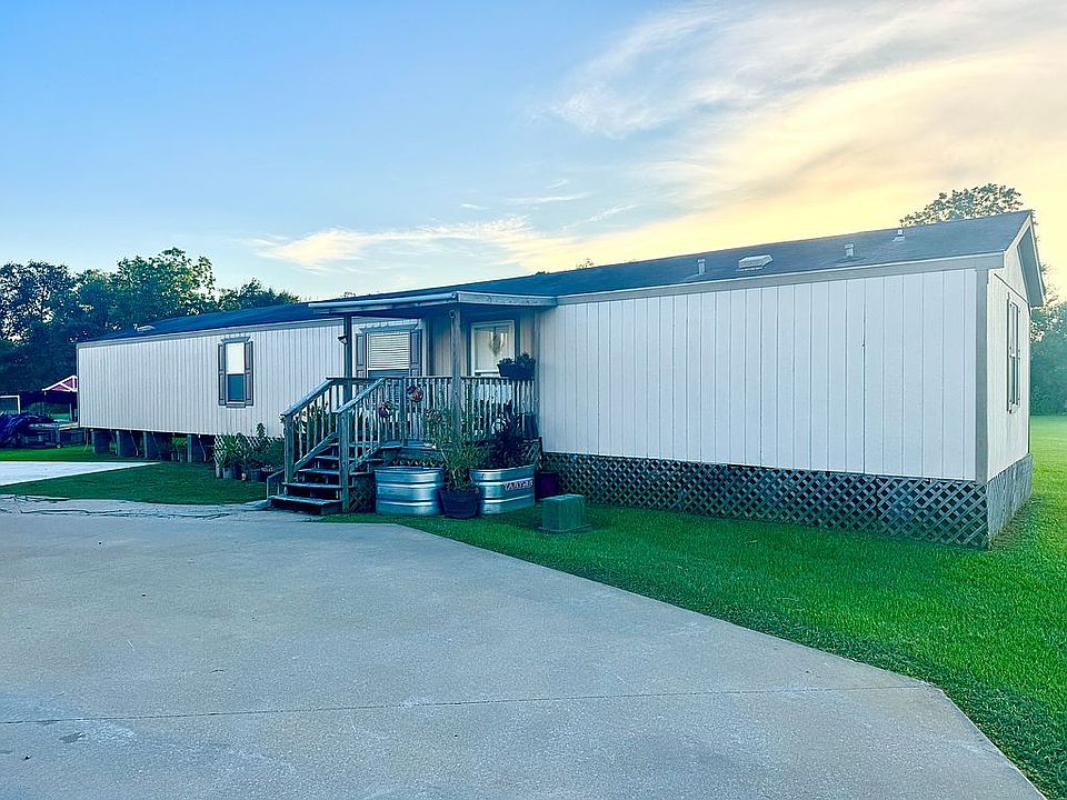 Single wide mobile home. Approximately 1305 sq ft. Includes central a/c unit, appliances and covered front porch.