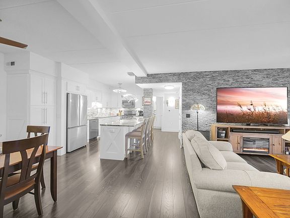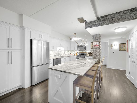 Easy living in this fully renovated and spacious condo in sought-after Carrig Ridge! High-end finishes throughout, boasting a sleek island kitchen with breakfast bar, abundant upgraded shaker cabinetry with pantry, granite countertops, and stainless steel appliances (refrigerator 2024). Extend your living area to the 15x6 screen-enclosed private balcony offering ample room for seating and BBQ entertaining. Retreat to the primary en-suite featuring a custom expanded shower with a waterfall shower head, a soaking tub for relaxation, a custom vanity with dual sinks, plus two large closets. The second bedroom offers versatile use as a guest room, office, or workout room. There is also a remodeled full guest bathroom. Other features include a custom stone wall in living room, slate and granite in bathrooms, upgraded lighting, flooring, and base trim throughout, new interior doors and hardware, custom blinds, a new water heater (2024), a convenient in-unit full-sized laundry room with a newer washer/dryer (2023), and an underground heated garage space (#3) with storage. This elevator building offers a secure entrance with surveillance, plus a new roof in November 2025 (with no special assessment required). All this in a prime location just minutes from I-355, I-80, I-294, I-57 Metra, shopping, restaurants, and more. Act Fast!