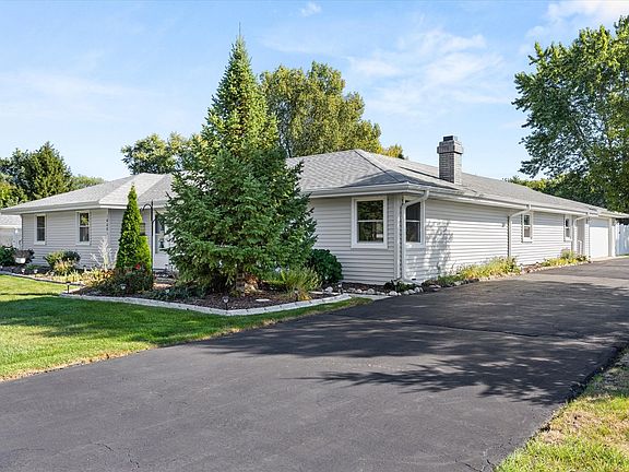 Welcome to your own private sanctuary just minutes from town. This four bedroom, two bath home is situated on an oversized corner lot, with a fenced yard with an above-ground pool, a spacious concrete patio, and a paver patio covered by a pergola-perfect for outdoor entertaining. All pool equipment and the shed stay with the home. The oversized two-car garage features a covered walkway, while the circle driveway provides ample additional parking. Inside, the massive master suite is a true retreat, complete with a private bath, door wall to the outdoors, and its own Space-Pak heating and cooling system. In addition there are three generously sized bedrooms provide plenty of space for family, guests or home office. The light-filled kitchen, dining area, living room and family room with wood burning fireplace offer room to gather and relax. Additional highlights include windows and air conditioning with a transferable warranty, a well-maintained septic system with lift station alarm, and evident pride of ownership throughout. This home is truly move-in ready and waiting for its next chapter.