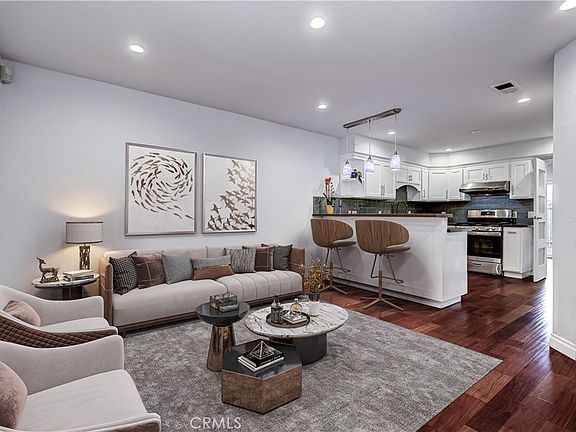 Turnkey remodeled 3-bedroom, 2.5-bath with Recessed lighting throughout, townhome in a desirable gated Gardena community. The home features a bright, welcoming layout with a spacious living and family area downstairs, complete with beautiful flooring and a cozy gas fireplace. A skylight over the stairs fills the space with natural light, and high vaulted ceilings upstairs create an open, airy feel. Large sliding doors open to a private backyard, perfect for relaxing, entertaining, or picking lemons from your own tree. The interior location ensures peace and quiet, away from street noise.