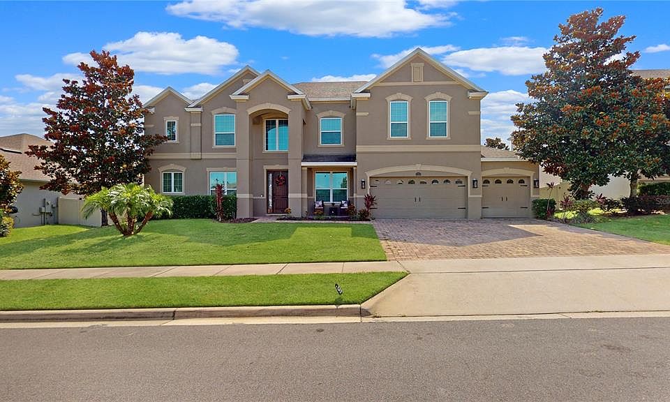 Welcome to this exceptional home with abundant natural light. Perfect for those looking for a home that is large or suitable for multi-generational living. The home features 7 bedrooms with two full master suites, on downstairs and one upstairs. Both have spa bathrooms with his and hers vanities, soaking tubs and separate shower, large oversized closets and spacious additional flex spaces. There are 5 additonal spacious secondary bedrooms that includes a guest bedroom on first floor with remaining bedrooms upstairs with walk in closets. With a 5 way bedroom split, this home offers true privacy for everyone. The family room is light and bright and open to the gourmet kitchen and nook area. In the gourmet kitchen there is a large center island, 42" cabinets, Kitchenaid stainless steel appliances with built in oven and microwave and cooktop, pot filler, touch faucet, granite counter tops and Samsung refrigerator. A large butler pantry is perfect for a morning coffee bar, wine bar or snack station. Off of the foyer is the dining room and additional living room that can be used as a home office, den, playroom or flex space. Upstairs you will find entertainment options with a large light and bright bonus room compete with wet bar and an additional TRUE media room for fun movie nights. Overlooking the kitchen/family room is the open lanai area that overlooks the sparkling salt water with fountain. The yard and patio allows for seamless indoor/outdoor living space and tv hookup. The 3 car tandem garage has custom built in metal storage cabinets and overhead garage racks for plenty of storage. Freshly painted exterior. Don't miss out on the opportunity to own this stunning home in the Verde Park Community. Not only does this exceptional home offer a luxurious lifestyle, but it's also conveniently located near the Florida Turnpike, 429, 408 ensuring an easy commute to downtown Orlando, the attractions and airport. Close to incredible shopping and dining options in Winter Garden and Clermont, as well as top public and private schools, hospitals, parks, lakes, and the West Orange Trail that is steps from the community entrance. This home is the perfect blend of convenience and luxury. And, it has a Winter Garden mailing address but is located in Lake County with Lake County taxes.