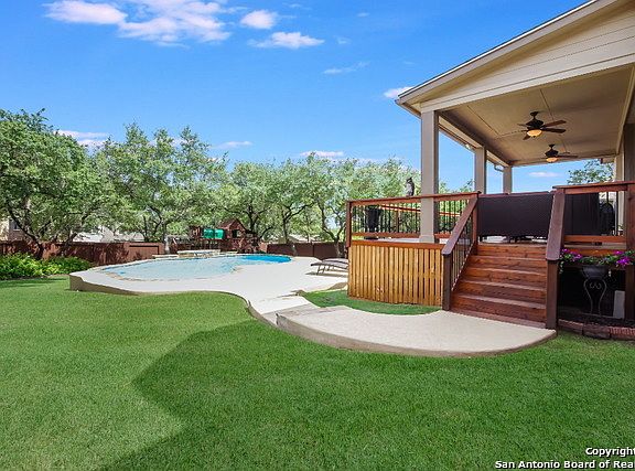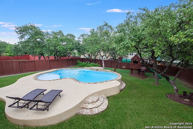 Pool new in 2013 on this lovely home; NO CARPET wood and laminate throughout& flat useable yard & extended covered deck. Flexible floorplan w/study(could be bedrm 5); master and secondary down. Enter into wood floors through the family room with fireplace upgraded lighting, custom window treatments and decorator paint. Granite island kitchen; breakfast area w/bay window. Oversized master overlooking pool w/ dual closets &jetted tub. Upstairs boasts separate media and gameroom and 2 very generous bedroom