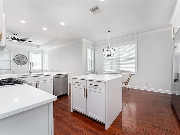 Quartz countertopsZline gas rangeCustom built-in refrigeratorBright crisp layoutSpacious front porchSecluded fenced-in backyardTrimmed windows