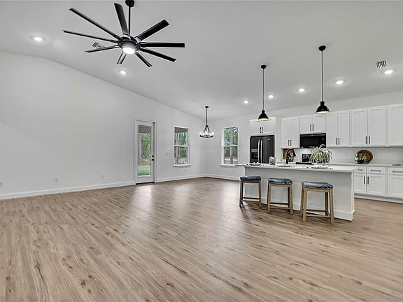 1 Acre Property in Royal Highlands! Welcome to The Juliet , a stunning move-in ready new build designed for modern living. Nestled in the desirable Royal Highlands area on a peaceful 1-acre homesite, this home has both privacy and convenience. The property to the right is county-owned DRA land, ensuring that it will not be built on. From the charming covered front porch to the spacious open interior, every detail of this home has been thoughtfully crafted for today’s lifestyle. Inside, you’ll find 4 bedrooms, 3 full bathrooms, and a 2-car garage. The garage opens into a convenient laundry and storage area with direct access to the well-appointed kitchen, where all appliances are included. The open-concept great room and dining area flow seamlessly onto the covered lanai, creating an inviting indoor-outdoor living space—perfect for entertaining or enjoying peaceful mornings. The expansive owner’s suite is a true retreat, featuring a dual sink vanity, a luxurious walk-in shower, and a spacious wrap-around closet. Each walk-in tiled shower includes a frameless glass enclosure, adding a touch of luxury throughout. Three additional bedrooms and two full bathrooms give plenty of space for family or guests. With no HOA restrictions and a prime location just minutes from shopping, dining, and the Commercial Way/US-19 corridor, this home combines elegance, comfort, and practicality. The Juliet — where modern design meets peaceful Florida living. *1 or more photos have been virtually staged*