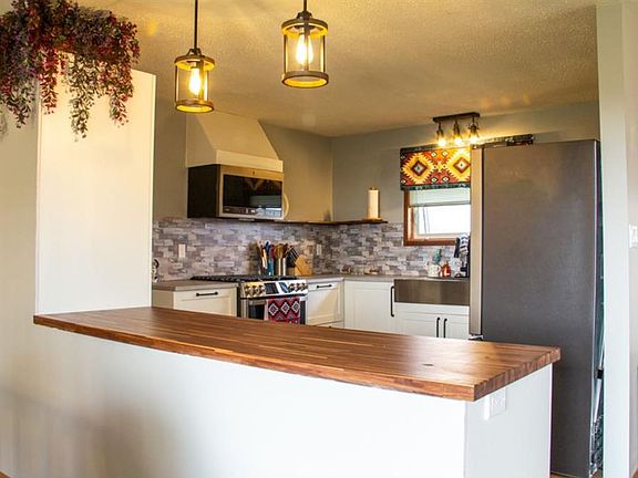 Discover the perfect balance of space, function, and country charm on this 10.06-acre fully fenced property, ideal for families, hobby farmers, or those seeking a versatile lifestyle. Located 15 minutes from Hanna, This home features 5 bedrooms and 2 full bathrooms, including an updated kitchen and a modernized lower bathroom, ensuring comfort and style throughout. An attached double garage, sunroom, and a versatile 514 sqft studio area expand your living options, while a small greenhouse and a 20’ x 40’ garden with mature asparagus patch, raised herb bed, and composter make farm-to-table living a reality. A cold storage room adds practical convenience. For those who need workspace, this property shines with a 50’ x 20’ shop complete with service pit and air hose line, plus an 8’ x 20’ powered workshop with tools included. Additional outbuildings include an animal barn with loft and two lean-tos. Equipment such as a 1960s tractor with bucket, forks, and blade (as is), a 2010 Craftsman riding mower with 46” deck, and an older Briggs & Stratton rototiller are included, offering value and opportunity. All buildings were constructed in 1970’s and have metal roofing. The shop is partially enclosed with a wood burning heater. The house has 6” walls and R40 insulation in the ceiling. Hot Water Tank, furnace and Windows all updated in 2010, water pump in 2012, kitchen renovations completed in 2025. Enjoy the outdoor lifestyle surrounded by a snow break lilac hedge that wraps the home and acreage. The length of the property along the main road is paved to keep dust minimal, while well water and septic services add to the self-sufficient. Don’t miss this opportunity and call for your viewing today!