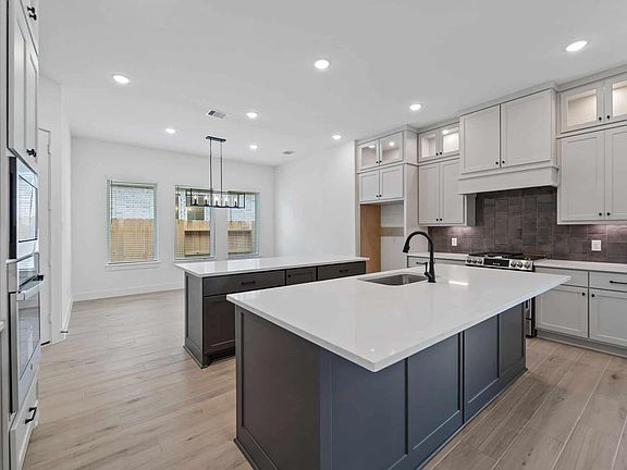 The Lakeway plan delivers everything your inner host has dreamed of. This one-story layout spans 2,649 sq. ft. with 4 bedrooms, 3.5 baths, and a 3-car tandem garage. The star of the show is the double island kitchen made for gatherings that always end up where the food is. Sliding patio doors open to an oversized covered patio overlooking a private greenbelt with no rear neighbors. Inside, the open flow connects your entertainer’s kitchen to a spacious living area, plus a flex room and a dedicated office for true work-life balance. Located in Evergreen, a nature centered master planned community with premium amenities and convenient access just 15 minutes from The Woodlands. Estimated completion January 2026.
