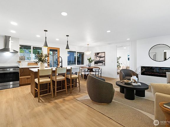 Welcome to this beautifully updated home in Burien! With the Guest House, this home totals 4 bedrooms and 3 bathrooms. Offering 3 spacious bedrooms and 2 bathrooms in the main house, with a detached guest house in the backyard that features its own kitchen, bathroom, and laundry — perfect for guests, rental income, or extended living! Enjoy mountain views from the comfort of your home, complemented by new vinyl plank flooring throughout, brand new appliances, sleek new cabinetry, and modern fixtures. The master suite is complete with a walk-in closet, double sinks, and a luxurious double shower head in the en-suite bathroom. Enjoy new landscaping with a fully fenced yard in a highly desirable neighborhood.