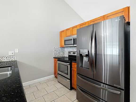 Granite countersVaulted ceilingsWood shaker style cabinetsDouble sliding glass doorsNew fenceWalk in style showerStainless-steel appliances