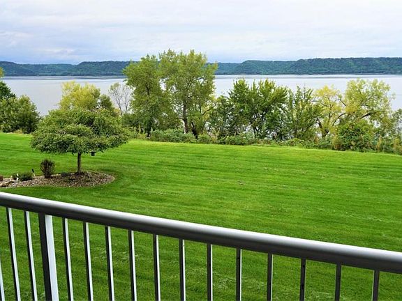 Main level living - no steps! Walk straight into this unit from the front entry and enjoy the great views of Lake Pepin - Mississippi River. "10" views from this home and deck. 2 bedrooms and 2 baths (full master bath with separate tub and shower). Electric fireplace. Granite counter tops. New carpet thru out! Walking distance to the Marina, Harbor View, Pickle Factory, Garden Pub and coffee shops. Guest bedroom has adjoining bath. New furnace & central air. New toilets. New decking 2015. Hurry on this main level unit!