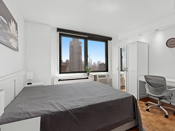 UNFURNISHED or FULLY FURNISHED, sunny, bright throughout the day, high floor alcove studio is available for rent immediately at the Ruppert Yorkville Condominium in the vibrant Upper East Side. The inviting apartment features a separate sleeping area with a queen size bed and fresh linens offered at your convenience. A living area is equipped with an expandable sofa , a brand new Sony TV, a coffee table and a foldable dining table. Kitchen supplies are also included. All you need is to bring your suitcase. The building has a 24 hour doorman, concierge, valet, a laundry room, a dry cleaning service and a parking garage. Electricity and cooking gas are included in the utilities. No smoking and no pets allowed. The building is mid way between Central and Schultz Parks, near colleges, museums, shopping, restaurants and public transportation, including 4,5,6 and Q subway lines and buses.