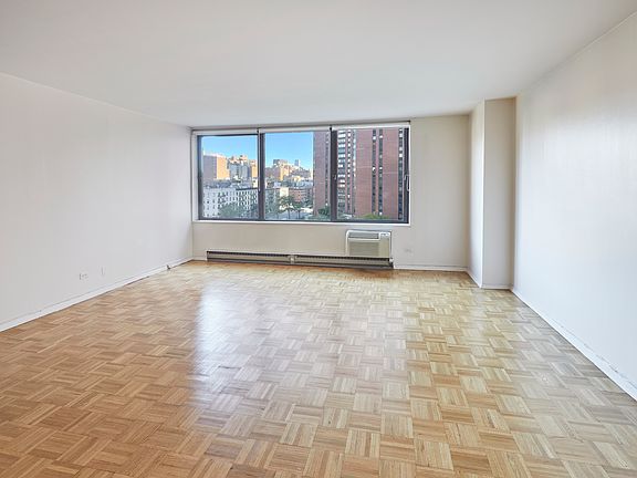 The expansive living room has an additional dining area, the entry foyer has two large closets, and at the end of the gallery leading to the bedroom is a large linen closet. The bedroom easily fits a king-sized bed and additional furniture, and the bathroom provides a tub, a rainforest shower, a triple-width medicine cabinet and on-trend wallpaper. One or more home office areas can easily be incorporated into Residence 9G, and contemporary paint colors and light fixtures, pristine parquet wood flooring, California-style closet built-ins, through-wall air conditioning and baseboard heating offer a serene and comfortable home environment.