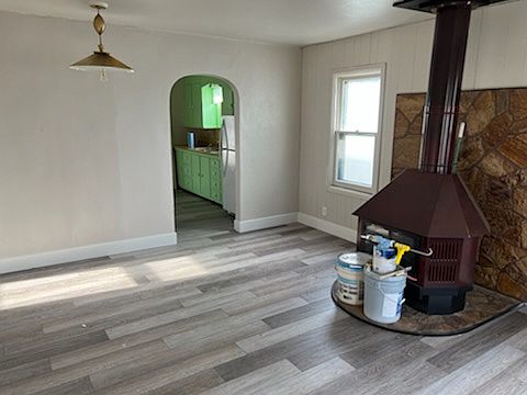 Recently renovated 3bed 1 bath home with lots of room to grow a family. Wood burning fireplace in the grand living room. 2 bedrooms off to one side of the house with a bathroom. Walking into the spacious retro kitchen. New fridge, washer and dryer. A large fenced backyard with mature shade trees. A covered patio area perfect for summer grilling. Lots of parking with a long driveway and a single car garage. This home features a basement laundry with lots of storage and an additional bedroom downstairs. Minutes away from everything while off on a quiet street. Will be available dec Renter pays utilities G/W/G/S/E. Pet deposit per animal non refundable. First/ last/ security deposit due at signing. Credit check and rental references required. Normal maintenance done by tenant per Idaho State law. No smoking inside of home.