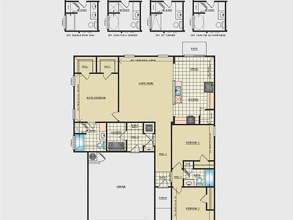 Introducing the beautiful Taylor plan, a home brimming with curb appeal, featuring a charming covered front entry and inviting front yard landscaping. This open-concept design showcases a thoughtfully split floor plan with three well-appointed bedrooms and two stylish bathrooms. The spacious master suite is a true retreat, complete with his and her closets for ultimate convenience. The marvelous kitchen is fully equipped with energy-efficient appliances, making meal prep a breeze, and a generous laundry area conveniently located just off the garage adds practicality to your daily routine. Don’t miss the opportunity to learn more about this delightful home today! *Photos are of a similar model.
