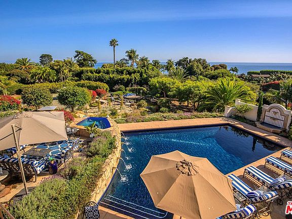 Welcome to one of the most magnificent Hope Ranch estates, offering unparalleled Ocean Views from the Home, an Expansive Pool and Spa, with Gardens, Waterfalls and Ponds, all taken care of for you and included in your stay. This 1.6-acre property, Villa de Mandevilla, is remarkable and features Koi and Turtles, the stunning Heated Pool with Fountains, and a soothing infinity-jetted Spa with panoramic Ocean Views. (Including Security Patrol, Hope Ranch Private Beach, Tennis Courts, and Pets are Okay.) This Fully Furnished Luxurious Gated Estate with Mediterranean Architecture features 5 Bedrooms, 5 Bathrooms, and immaculate designer furnishings throughout highlighted by a Great Room with Soaring Ceilings. (*Available for Short-term or Long-term Lease.) This property features incredible gardens brimming with butterflies and hummingbirds. A Gourmet Kitchen, complete with granite island, opens to spacious Ocean-View Dining Areas ideal for Family gatherings. The exquisite Primary Suite boasts breathtaking Ocean Vistas, high ceilings, a Fireplace, Private Terrace, Steam Shower, and a Deep Soaking Tub. Further amenities include an Ocean-View Home Office, Media Room, Game & Exercise Room, and a Den/Wine tasting room. Feed the turtles and koi as they swim up at the ponds. Enjoy the calming sound of water flowing over a bridge to a private seating area. Walk around and appreciate the spacious land with beautiful gardens and blooming flowers. The Media Room is ready for your favorite movies and shows with a big screen. The property includes a Wine tasting room with a Wet Bar and impressive wine cellar. Previously owned by the Oscar Mayer family, and located on a quiet cul-de-sac, this property boasts unique gardens and ocean views from nearly every room. There is ample space for multiple home offices, and one minute to Hope Ranch Beach. This Exclusive Vacation home offers unforgettable living experiences. Landscaping, ponds, pool, and spa maintenance are included, allowing you to relax and enjoy this botanical paradise.