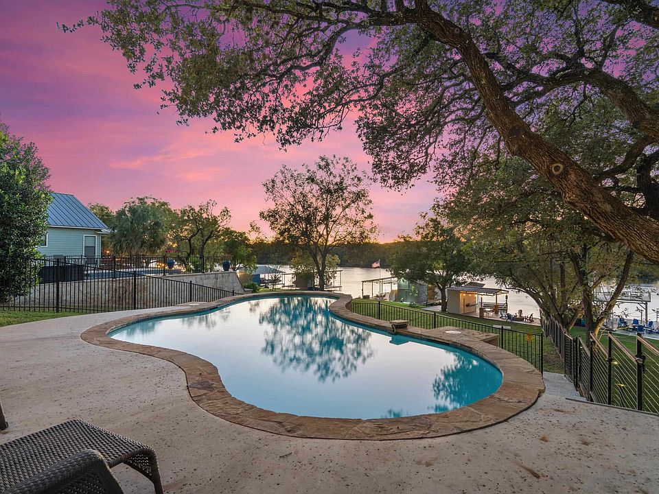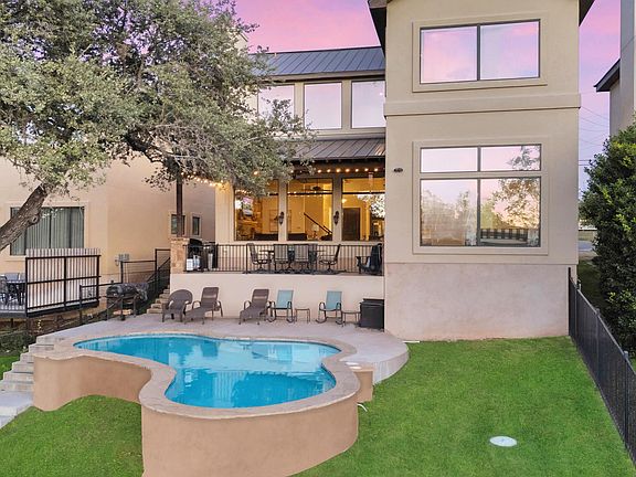 Nestled along the Colorado arm of Lake LBJ, this property is the epitome of lakeside living. Boasting a private boat dock, two jet ski lifts, and a heated pool, it embodies the allure of waterfront relaxation. Expansive windows on each level of the home capture breathtaking views of the lake, creating a seamless connection between indoor and outdoor living spaces. Step inside to discover a carefully crafted interior that complements the natural beauty just beyond the windows. The open concept floor plan assures a great view offering the perfect blend of convenience and indulgence with 4 bedrooms, 3.5 bathrooms, and built-in bunk beds for additional guests. The home continues to impress with two spacious living areas, a heated and cooled garage, and an inviting patio. The outdoor haven, complete with a lakeside pavilion, is designed to make entertaining effortless. This estate seamlessly integrates with the natural landscape, creating an idyllic setting for both soothing moments and grand celebrations. Whether you seek a personal lakeside retreat or an investment opportunity, this home is a testament to the harmonious integration of luxury and comfort. Indulge in the experience of living in the serenity of the heart of the Hill Country. Information should be independently verified.