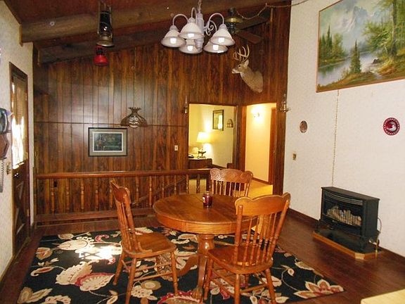 Rustic cedar-sided 4 bedroom home on 15 mostly wooded, close-to-town acres. Handsome brick living room fireplace. Nice-sized family room. Office. 13' open beamed ceilings in the living room. Large country kitchen with dual ovens and Jenn-Aire range top. Partially finished basement with garage and shop area. Nice Florida room with a pretty view. 10x30 deck. Fenced pasture with pond for livestock. Fruit trees, garden spot. Enjoy the convenience of town yet live in the country!