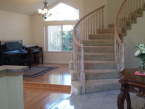 Bright, spacious home in the Strawberry Field tract in North Oxnard. Double-door entry opens to a beautiful spiral staircase and step-down living and family rooms. Fireplaces and wood-like flooring in living and family rooms. Wet-bar included! Granite counter tops and breakfast nook in kitchen. Bottom floor has one bedroom and a 3/4 bathroom. Sliding glass doors open up to a beautifully landscaped garden in backyard. Four bedrooms have mirrored closet doors. Fifth bedroom has walk-in closet. Master bedroom has his/hers closets.