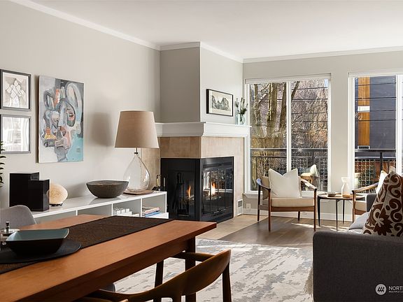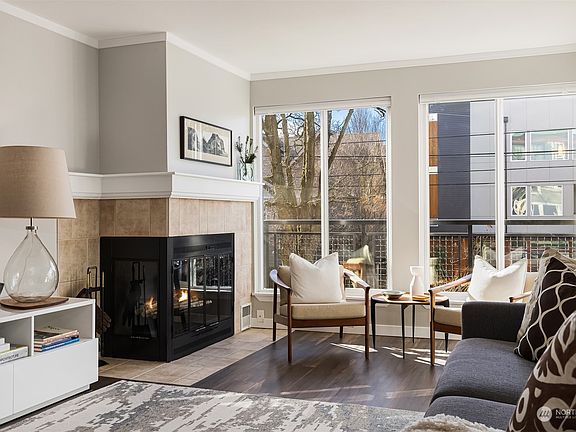 Discover your turn-key hidden GEM at The Columbia on Cherry Hill, a quaint 12-unit contemporary masterpiece ahead of its time & ideally set where modern metropolitan pleasures meet tree-lined residential treasures! Feel right at HOME in this west-facing, light-filled, luxuriously upgraded jewel box with SPACIOUS layout, floor-to-ceiling wall-to-wall to windows, corner fireplace, french doors & Romeo & Juliet balcony. Newly updated kitchen & bath with quartz counters, tile backsplash & steel appliances. New high-end LVP flooring, fresh paint, lighting & custom mill work. Level entry, yet safely perched above the street with secure garage & elevator. Rock solid & QUIET with extra thick walls. Investor & pet friendly, ample storage & LOW dues!