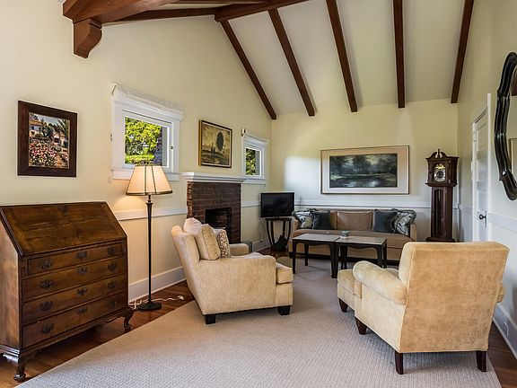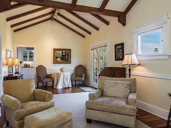 Beautiful and iconic Montecito fully furnished 2 bedroom 2 bath guest cottage. The home has wood floors throughout and high vaulted ceilings. Kitchen has new appliances including dishwasher. In addition, there is a separate living room and family room, both with fireplaces, creating a single family home sensibility. Outdoor deck space with BBQ is ready for summer. Parking area and laundry onsite. The property sits on more than one acre with significant separation from the pristine main house for great privacy, and the dense dramatic landscaping is something to behold, with a large European style working fountain.Available May 2019 through September 2019 for $7,000 a month. Then available November 2019 for a one year lease.