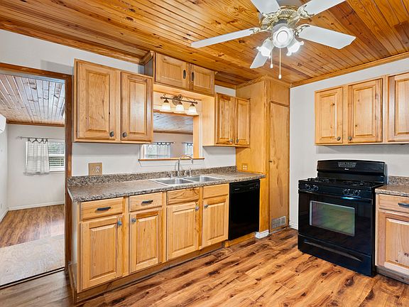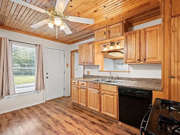 Country home in a picturesque, private setting just three miles north of downtown Mineral Wells! This two-bedroom, one-bath home is easy to maintain and ready to move in—or the perfect canvas for your personal updates. The bedrooms and hallway feature original hardwood floors, while the kitchen and living areas have been updated with quality laminate. A charming tongue-and-groove knotty wood plank ceiling adds rustic, cabin-like warmth. Enjoy peaceful sunrises on the back deck, complete with an accessible ramp. This affordable, cozy property offers plenty of space to establish your own small farm and enjoy the serenity of country living, all just minutes from town!