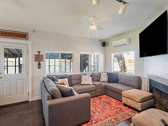 Charming waterfront cabin perfectly positioned on a quiet cove of Possum Kingdom Lake. Enjoy lake life to the fullest with a spacious screened in porch, waterside patio, and cozy fire pit overlooking breathtaking sunsets. The property features a 55x20 foot climate controlled shop with two bedrooms and a full bathroom, offering comfortable guest accommodations or space to store all your lake toys. The main cabin provides a warm and inviting living space with classic PK character, while the covered Cantina creates the ultimate outdoor entertaining area for family and friends. This well maintained retreat includes a fenced yard and private dock with low maintenance Trex decking, all set in a quiet neighborhood on the popular peninsula. A rare find combining charm, comfort, and functionality right on the water.