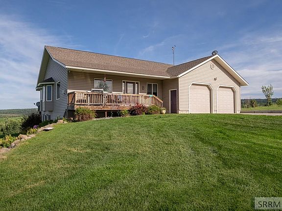 This custom-built home sits on the Ashton Hill, within walking distance to world-class fishing on Henry's Fork of the Snake River. You'll love the open floorplan and large windows overlooking the valley and property. The living room has a cozy fireplace and is open to the dining room and kitchen. The kitchen has tile flooring, custom cabinets, & a large island with bar. The laundry room/mudroom has plenty of cabinets for storage, a counter for folding clothes, a desk space (perfect for sewing!), a trash compactor, coat rack, and built-in ironing board. Down the hall, you'll find the master suite with a walk-in closet that has built-in shelving, attached bathroom with dual vanity & linen closet. The main floor also has an additional bedroom and another full bathroom. Head downstairs to the beautiful family room with pine tongue and groove on the ceiling and walls for a classic mountain feel. There is another fireplace with river rock surround and built-in bookcase. A set of double doors walks out to the yard, plus there are 2 additional bedrooms, a full bathroom, storage room with built-in shelves. You'll have a 2 stall attached garage and a large driveway for parking. There is plenty of space on the 2-acre lot for you to add a garden, play area, and more.