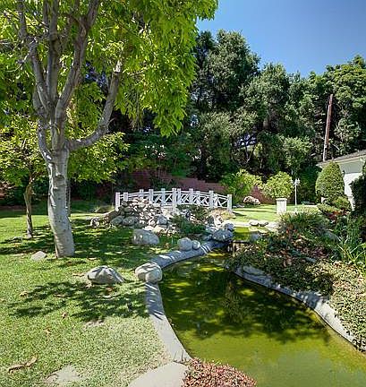 Swimming poolPark-like backyardLarge balconiesCenter islandBuilt-in bbq grillerFish pond and fountainGated luxury mansion
