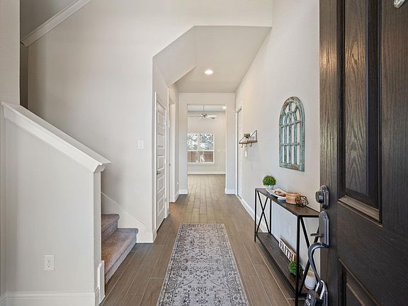 Move-in ready and priced to sell! This 2020 Brohn Homes build sits on a desirable corner lot in the Oaks at San Gabriel, surrounded by scenic open space and anchored by a beautiful mature oak tree out front. Inside, enjoy an open-concept layout with wood-look tile flooring on the main level, multiple living areas, and a bright kitchen with ample counter space, breakfast bar, pantry, and mudroom. Refrigerator, washer, and dryer are included for an easy move-in. A flexible bonus room is perfect for a home office, study, or dining space. Upstairs features two secondary bedrooms, a full bath, and a versatile loft area. Outside, relax on the covered back patio overlooking the fenced yard, with an extended driveway and two-car garage providing plenty of parking. Located in an established, completed section of the community with access to trails, park, and pool amenities. Minutes to highways and toll roads, approximately 35 minutes to downtown Austin, and less than 10 minutes from Georgetown’s historic square—often called the most beautiful town square in Texas.