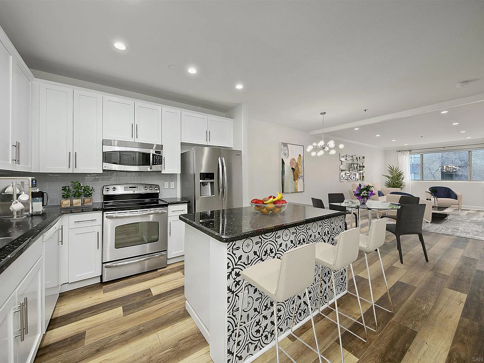 Beautifully remodeled spacious one bedroom in Little Italy's best location (on the 2nd level facing India St). A generous oversized covered balcony overlooks the beating heart of San Diego's hottest neighborhood. There's nothing for you to do but start enjoying life in this light filled, open design home. New flooring,stainless steel appliances, motorized shades & so much more. Beautiful master suite w/walk in closet. Clever coffee nook, stacked laundry, lots of storage. Don’t miss the fourth floor amenity deck with BBQ area and views of the bay and city. Condo comes with 1 parking space. Porto Siena is a welcoming complex with a BBQ, courtyard, and community rooftop area with gorgeous bay views. You will love all that Little Italy has to offer right out your door with wonderful restaurants & bars, shops, farmer’s market and close to the trolley /train.