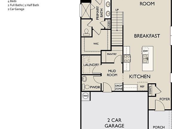 The Finley home plan features an open concept design that is ideal for gatherings. The gourmet kitchen boasts an impressive island that overlooks both the family room and the breakfast area. Conveniently located off the garage are a powder room and a mudroom. The first-floor primary bedroom suite serves as the perfect retreat, complete with a double vanity, a linen closet, a walk-in shower, and a walk-in closet. On the second floor, you'll find three spacious secondary bedrooms, providing flexibility for living and working, along with ample closet space. This level also includes a linen closet and a full bathroom.
