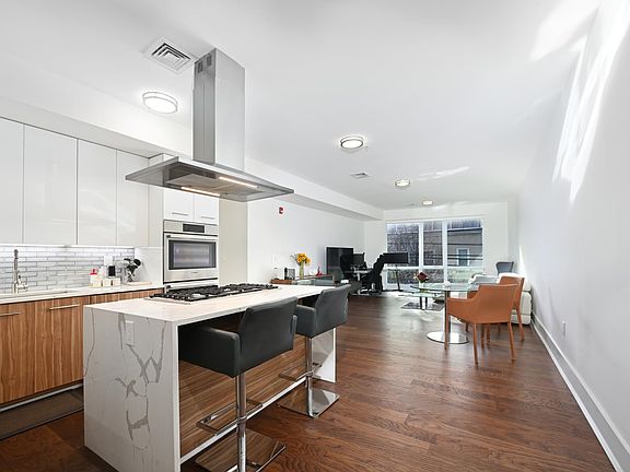 Experience The Manhattan, a boutique collection of 9 modern condominium residences. Located in the thriving "West Hoboken" neighborhood perched atop Manhattan Avenue at the corner of 16th Street. Residence 202 features an expansive 1340-square-foot open layout with 2 bedrooms and 2 baths. Enjoy a sun-splashed southern exposure with floor-to-ceiling windows throughout. An exquisite chef's kitchen features top-of-the-line Bosch appliances including the convenience of a double oven, gas range with professional-grade exhaust, dishwasher, and French door refrigerator. Sleek two-tone European-inspired 42" cabinets provide abundant storage and complementary Calacatta Quartz waterfall countertops enhance the elegant design. The generous open living area provides ample room for a dining table, a large comfortable seating area, and more! Bedrooms are well-sized for king-sized furniture and offer plenty of storage. Primary bedroom is complete with an en-suite bath and 2 large closets with custom built-ins. Bathrooms include glossy double vanities, floor-to-ceiling tiles, frameless glass shower, and high-end Grohe fixtures. In-unit full-size washer/ dryer, central HVAC, hardwood floors, and Hunter Douglas custom motorized window shades throughout. Deeded garage parking, plus a large bonus private storage room adaptable as a home office or hobby space. The Manhattan offers the convenience of an elevator, polished porcelain panda lobby with keyless entry, gated private entrance, package room, fitness center, and professional management. Enjoy nearby restaurants, shops, parks, schools and more. Convenient transportation to NYC via the NJ Transit 123 bus at your block. Quick travel to Hoboken and the Weehawken waterfront, Trader Joe's, Whole Foods. Enjoy the financial savings of approximately 2 years remaining of a 5-year tax abatement.