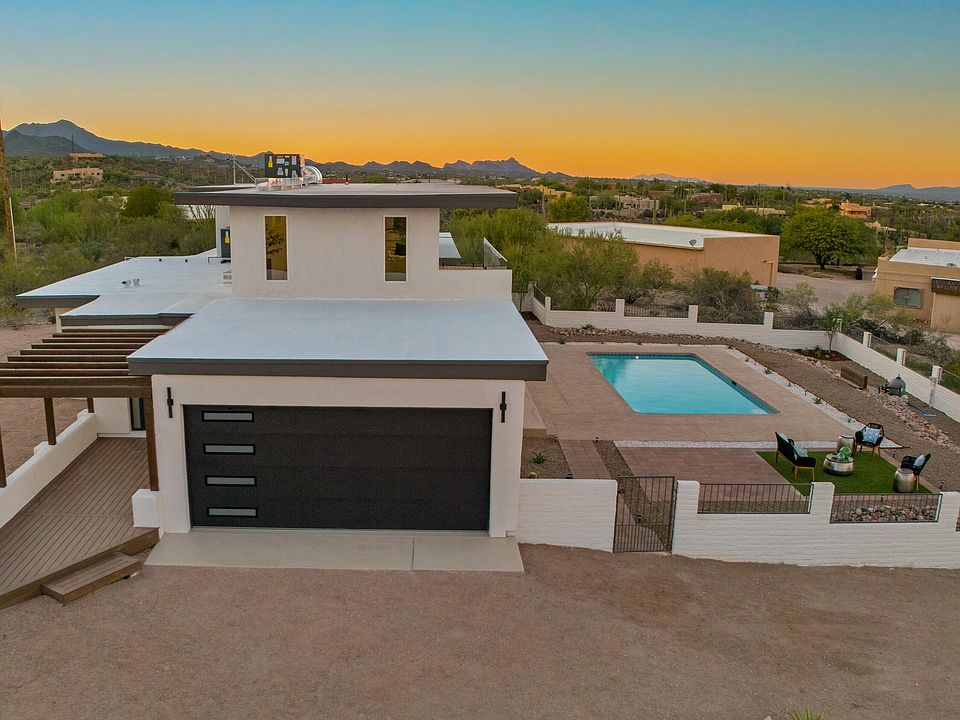 Discover modern desert luxury in this newly remodeled architectural masterpiece on Tucson's West Side. Perched on nearly an acre, this home offers privacy, panoramic city lights, and breathtaking Catalina Mountain views from every room. The open-concept layout features expansive glass sliders, a designer kitchen with waterfall granite island, and high-end appliances. Enjoy a resort-style backyard with pool, patios, and sunset views. Upstairs, a loft opens to a view balconya"ideal for relaxing or entertaining. Every bath is reimagined with spa-like finishes. Minutes from Downtown Tucson, Starr Pass, and top dining, this home blends luxury, livability, and stunning desert beauty. Agent/Owner This stunning modern home has been fully reimagined from top to bottom, offering a rare combination of privacy, design, and panoramic views. Every detail was thoughtfully selected to complement the home's clean architectural lines and connection to its natural desert surroundings.